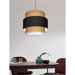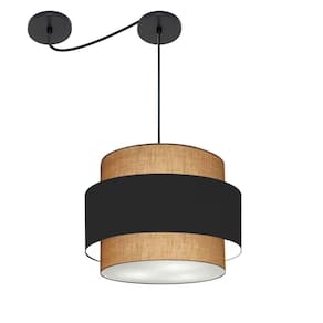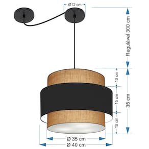 Lustre Sala de Jantar Com Desvio Vivare Md-4397 Cúpula em Tecido 40cm - Cor: Palha-preto-palha | Voltagem: 127/220V