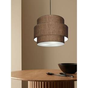 Lustre Sala de Jantar Com Desvio Vivare Md-4399 Cúpula em Tecido 50cm - Cor: Café | Voltagem: 127/220V