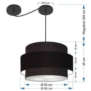 Lustre Sala De Jantar Com Desvio Vivare Md-4401 Cúpula Em Tecido 60cm Preto 127/220v