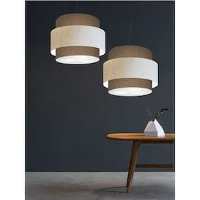 Lustre Sala de Jantar Com Desvio Vivare Md-4401 Cúpula em Tecido 60cm - Cor: Cáqui-linho-bege-cáqui | Voltagem: 127/220V