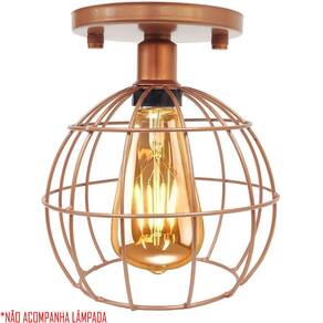 Lustre Teto Plafon Industrial Aramado Globo Retrô Luminária Sobrepor Vintage Agp Ilumini - Cor: Cobre Rose Gold