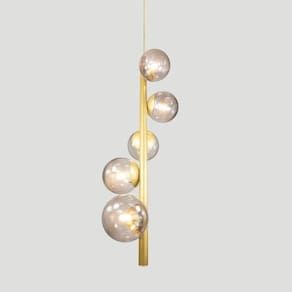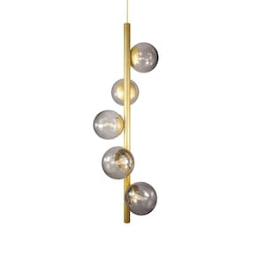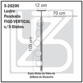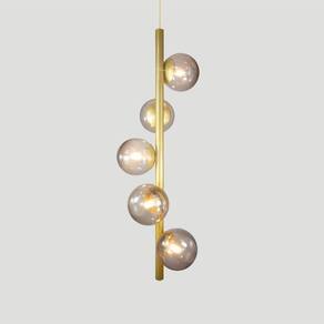 A linha de luminárias modelo tem um ar contemporâneo, um estilo moderno, minimalista e ao mesmo tempo. Os pendentes podem ser colocadas em quartos, salas de jantar ou estar e as arandelas indicamos para lounges, salas, dormitórios ou até mesmo em lavabos. Com Design simples trazem classe e estilo a qualquer ambiente. Todos luminárias da linha são produzidas em alumínio com esferas de vidro. Descrição Técnica: - Modelo: Lustre Pendente com 5 Globos de Vidro - Acabamento: Pintura a pó térmica - Tamanho dos Globos de Vidro: 120mm - Quantidade de Globos de Vidro e soquetes: 5 - Material: Globo em Vidro e Hastes em Alumínio - Tamanho Aproximado (LxAxP) com os Globos de Vidro: 100 cm X 20 cm X 20 cm - Cabo: Cabo Revestido em Tecido - 70cm - Soquete: Padrão G9 - Bivolt: Sim