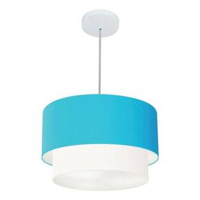 Lustres Pendentes Duplo Cilíndrico Vivare Md-4350 Cúpula Em Tecido 45x40cm - Bivolt Azul-turquesa-branco 127/220v