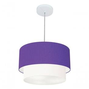 Lustres Pendentes Duplo Cilíndrico Vivare Md-4350 Cúpula Em Tecido 45x40cm - Bivolt Roxo-branco 127/220v
