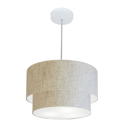 Lustres Pendentes Duplo Cilíndrico Vivare Md-4354 Cúpula em Tecido 45x40cm - Bivolt - Cor: Rustico-bege | Voltagem: 127/220V