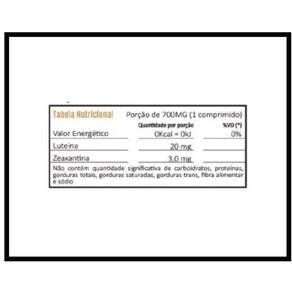 Nome do produto: luteína e zeaxantina Quantidade de cápsula: 60 Tipo de cápsula: comprimido revestidos Miligramas por cápsula: 700mg Registro do produto: notificação RDC Anvisa 240/2018 ou 27/2010 Ingredientes: luteína 30mg; zeaxantina 3mg idr% de ativos Modo de ingerir: 1 cápsula ao dia Não contém: sódio, lactose, glúten, açúcares, soja, conservantes, gordura trans Modalidade da venda: unidade Segurança: lacre interno e externo Origem: nacional Marca: New Vitta