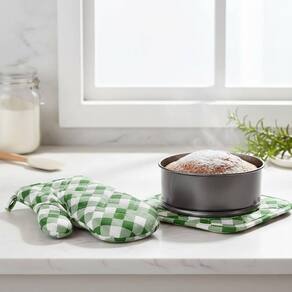 Luva Culinária Térmica Forno Alta Temperatura Resistente Cor: Verde A Luva Culinária Térmica é ideal para proteger suas mãos ao manusear panelas, assadeiras e formas quentes. Resistente a altas temperaturas, garante mais segurança e conforto no preparo das suas receitas. Prática e funcional, é perfeita para o uso diário na cozinha. Composto por 1 luva + 1 descanso.