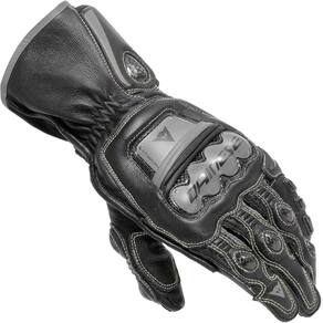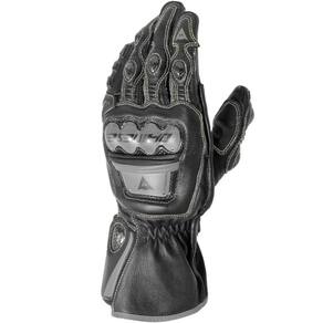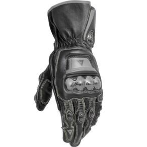 Características técnicas que fazem a diferença: Couro de cabra tingido em tambor, altamente resistente e com toque confortável; Inserções compostas em titânio e fibra de carbono para absorção de impactos; Costuras em fibra de aramida e reforços internos para durabilidade máxima; Sistema DCP no dedo mínimo com proteção lateral em resina termoplástica; Painel único de couro em toda a mão e palma reforçada com poliuretano; Construção do manguito pré-formado, com encaixe perfeito no macacão; Certificação CE Cat.II Pr EN 13594 Nível 1.