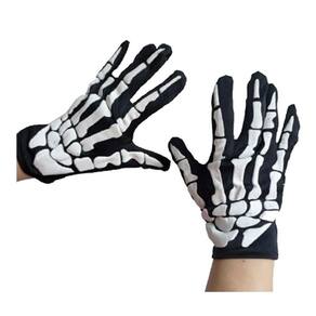 Contéudo: 1 Par de Luvas Esqueletos Preta e Branca para Fantasias