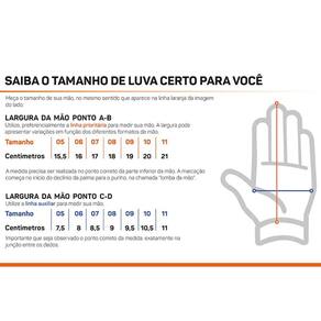 O modelo tem recorte Flat, se ajustando a vários formatos de mão e munhequeira elástica com ajuste em faixa aderente.