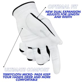 Luva de golfe masculina StableGrip com NaturalFit 2.0 com polegar de expansão dupla para melhor ajuste - Couro Cabretta Premium... (branco, 2GG, direita)