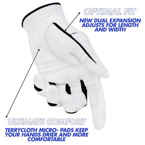 Luva de golfe masculina StableGrip com NaturalFit 2.0 com polegar de expansão dupla para melhor ajuste - couro Cabretta Premium... (branco, cadete médio/grande, esquerdo)