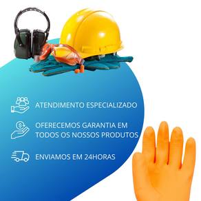 A luva em látex natural com forro flocado e relevo antiderrapante em formato colmeia oferece resistência mecânica, térmica e química, garantindo segurança em trabalhos médios e severos sem comprometer a flexibilidade.