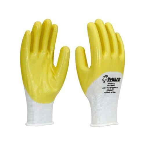 LUVA EM ALGODÃO NITRÍLICA AMARELA 9 (G) - IMBAT Luva de segurança confeccionada em suedine branco com banho em borracha nitrílica amarelada na palma, dorso e ponta dos dedos. Punho com acabamento em elastâno e costuras overlock. Indicada para proteção das mãos do usuário em operações leves em uso doméstico, veterinário, salões de beleza, clínicas estéticas e cosméticas e empresas alimentícias.
