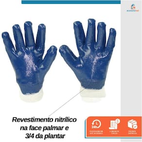 Características técnicas: Confeccionada em malha de algodão tricotada em uma só peça. Revestimento nitrílico na face palmar e 3/4 plantar. Punho elástico. Certificado de aprovação: CA Nº 49.476. Tamanho: 10/XG Cores: Palma, ponta dos dedos e parcial dorso azul, e parcial dorso e punho bege. Normas técnicas: EN 407:2004, BS EN 388:2016 + A1:2018, ISO 21420:2020 Níveis de desempenho: 3211X, X1XXXX Ref.: 7971273 Marca: Starfer