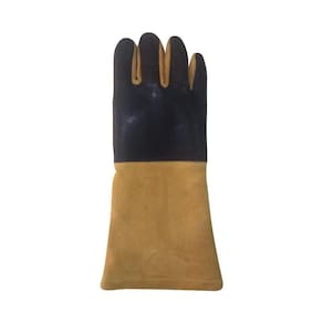 NOVIDADE Luva de segurança confeccionada em couro com tratamento retardante a chamas no punho e palma, forração interna em matelassê com tecido de algodão e feltros de poliéster agulhado, dorso e reforço da palma em Silicone Therm Rubber, exclusividade RRA. A única do mercado que aguenta até 500ºC. Alta Durabilidade. Melhor custo-benefício. Obteve os melhores níveis de desempenho para norma técnica EN 407 2004 : 444344. Especificações: - Tamanho: 10 - Marca: RRA EPI - Largura: 20 cm - Comprimento: 40 cm - Material Palma: Silicone - Material Externo: Couro - Cor: Amarelo - Resistências: Calor de Contato Palma , Calor Convectivo, Calor Radiante, Projeção de respingos de solda, Grandes quantidades de metal fundido g . Pareceres técnicos: IPT 2019 nº 1114892-203 - Resistência contra riscos térmicos de soldagens e processos similares BS EN 12477 - Tipo A - Resistência Térmica BS EN 407:2004 - Resultados: 444344 Ean: 7909463093457 Marca: Não Informado