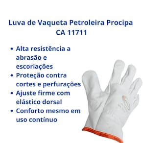 Luva de Vaqueta Petroleira Procipa CA 11711 Proteção e durabilidade para as mãos em ambientes pesados
