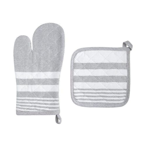 O Jogo de Luva e Descanso de Panela Stripes é essencial para proteger as mãos do calor excessivo e conservar as superfícies dos móveis, que podem ser danificadas ao entrar em contato de uma panela, forma ou prato quente. Feito em tecido 100% algodão, o conjunto é uma boa pedida para deixar sua cozinha mais charmosa e segura.