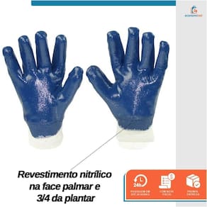 Características técnicas: Confeccionada em malha de algodão tricotada em uma só peça. Revestimento nitrílico na face palmar e 3/4 plantar. Punho elástico. Certificado de aprovação: CA Nº 49.476. Tamanho: 10/XG Cores: Palma, ponta dos dedos e parcial dorso azul, e parcial dorso e punho bege. Normas técnicas: EN 407:2004, BS EN 388:2016 + A1:2018, ISO 21420:2020 Níveis de desempenho: 3211X, X1XXXX Ref.: 7971273 Marca: Starfer Ean: 7891638065096