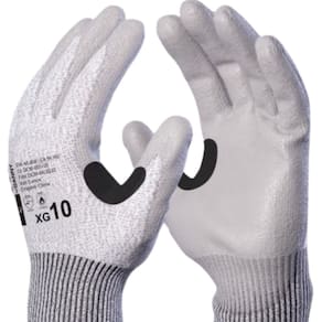 Luva confeccionada em polietileno de alta densidade (PEAD) com revestimento em poliuretano na palma e nos dedos, formato anatômico e dorso ventilado. Ideal para manuseio de peças cortantes, mesmo em ambientes úmidos, e resistente ao calor de contato de até 100 °C.