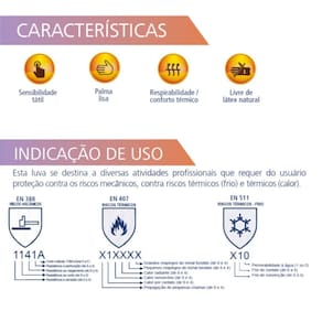 Luva Helanca Pro Pigmentada Branco KalipsoEste modelo de luva pode ser utilizado em diversos segmentos, tais como:Indústria agrícola devido sua gramatura, indústria orestal, colheita,jardinagem, paisagismo, indústria automotiva / montadoras, autopeças,indústria metal-mecânica, componentes eletrônicos não energizados,construção civil, logística, expedição, serviços de limpeza, manutenção,serviços de hotelaria, indústria da cerâmica, indústria gráca, entre outros.Instruções de uso:• Selecione a luva com o tamanho adequado às suas mãos;• Verique sempre os riscos da atividade a ser desenvolvida (riscosmecânicos, químicos, biológicos, térmicos, etc);• Para sua segurança, não faça uso de nenhum tipo de adorno;• Para melhor desempenho do produto, evite o uso com as unhascompridas;• Antes de calçá-las, lave e seque bem as mãos;• Faça o ajuste correto das luvas aos dedos, mãos e punhos;• Substitua imediatamente a luva, quando apresentar danos;• Escolha a luva correta para cada atividade a ser desempenhada;• Não utilize esta luva para manuseio de produtos líquidos;• Para seleção correta do EPI, consulte um prossional capacitado emSegurança do Trabalho.Conservação e limpeza:• A guarda da luva deve ser realizada em local seco, arejado, protegido dosol e de intempéries;• A substituição deve ser imediata quando a luva apresentar danos como:rasgos, furos, deformação e outras situações que apresentem riscos deacidentes ou doenças ocupacionais;• Não se recomenda higienização industrial na luva, esta prática podecomprometer o material que compõe o produto e oferecer riscos aousuário.Validade e durabilidade:• Validade: 5 anos após a data de fabricação;• A durabilidade em uso é indeterminada, pois depende de fatoresambientais e da atividade a ser executada.Não se espera deste produto nenhuma reação adversa ao uso.Produto livre de látex natural.Esta luva se destina a diversas atividades prossionais que requer do usuárioproteção contra os riscos mecânicos, contra riscos térmicos (frio) e térmicos (calor).Luva de segurança tricotada em náilon.Punho tricotado em elástico, comacabamento em overloque.Referência 02.03.4.1Tamanho 9 - GC.A. 39.670Código: 77474Marca: Kalipso