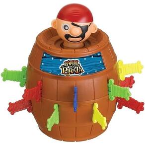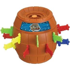 Jogo Pula Pirata! Reuna os amigos para a diversao Brincar e a melhor parte da infancia.E brincar em grupo, com os amigos ou com a familia, e ainda melhor.O jogo Pula Pirata ja e um classico ha algumas decadas. Ele é perfeito para promover uma competicao saudavel entre a galera que ja tem 6 anos ou mais. Como se joga Com 2 jogadores a brincadeira ja pode acontecer.O jogo funciona assim: Cada participante, na sua vez, coloca a espadinha no barril. Uma aqui, outra ali... E o clima de suspense fica no ar, pois ninguem sabe quando o pirata vai pular. Mas de repente, ao colocar mais uma espadinha, la vai ele, pulando para fora do barril. Que susto E divertido para valer.