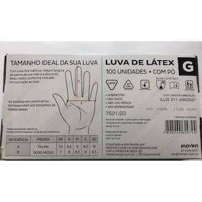 Luvas de procedimento latex de altíssima qualidade inove Tamanho G - 100 Un Luva látex de segurança (epi) para proteção das mãos confeccionadas em borracha natural (látex), na cor natural, com pó bio absorvível. Não estéreis com moldagem ambidestra para multiuso como, uso doméstico: lavar louça, culinária / cozinhar alimentos e limpeza da casa. Indicadas para uso industrial e profissional como: - Manicure - Cabeleireiro - Estética - Salões de beleza - Pintura/tintura - Procedimentos não invasivos - Em alguns casos, uso medico e odontologico Sobre o produto: - Original. - Lacrado de fábrica. - Com garantia. - Alta qualidade. - Marca conceituada no mercado. - Resistente. Sobre nós: Somos uma distribuidora de materiais de higiene, limpeza e descartáveis. A leaoflex life é um ecommerce que atua em diversos departamentos. Estamos presente nos maiores marketplaces e com uma excelente reputação levando nossos produtos para diferentes públicos para todo o Brasil.
