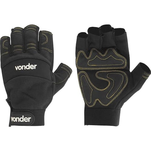 Luva multiuso sem dedos LMV300 Vonder Peso: 0.05 Kg Indicada para proteção das mãos durante o manuseio de ferramentas e peças, serviços industriais, transporte de cargas, montagem de equipamentos, uso esportivo, entre outros. Não possui proteção para os dedos. Possui sistema fixa fácil com elástico. Especificações Técnicas: Material da luva: 24% Microfibra/ 42% poliéster / 12% neoprene / 12% nylon / 10% PVC Tamanho da luva: 09 Cor da luva: Amarelo e preto Número do Certificado de Aprovação CA: 33520