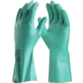 Especificações técnicas - Material: borracha nitrílica. - Comprimento: 33 cm. - Espessura: adequada para alta sensibilidade. - Forro: algodão flocado (DA-36.201). - Cor: Verde. - CA: 25313.