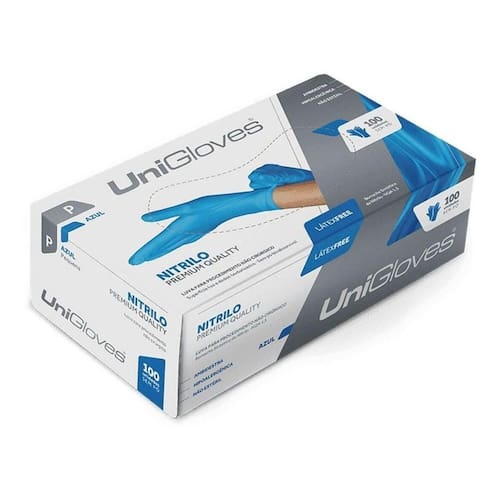 luva de nitrila azul unigloves para procedimento não-cirúrgico sem pó uma caixinha possui 100 luvas marca: unigloves cor: azul detalhes e características: fácil calçamento ambidestra barreira biológica ponta dos dedos texturizada alto conforto e ajuste adequado às mãos punho alongado, garantindo conforto e segurança proteção e elasticidade fabricadas em borracha sintética, são indicadas para pessoas sensíveis ao látex. sua composição fornece maior sensibilidade tátil, ajuste às mãos, conforto e elasticidade. são resistentes a perfurações e possuem barreira biológica. luva unigloves nitrilo sem pó premium quality azul: fabricadas em borracha sintética, as luvas de nitrilo são indicadas para pessoas sensíveis ao látex e apresentam uma composição que proporciona maior sensibilidade tátil, ajuste às mãos, conforto e elasticidade. quando submetidas a de alongamento ocasionado por uma tensão constante, as moléculas se acomodam e entram em equilíbrio com as forças de tensão externas, moldando-se às mãos do usuário. assim, além de evitar alergias em mãos sensíveis à proteína do látex, as luvas de nitrilo também reduzem o desconforto e a fadiga muscular. características tipo: sem pó, não estéril; cor: blue; material: nitrilo 100% sintético ; pontas dos dedos texturizada; fácil calçamento; ambidestra; mais elástica; maior espessura; redução de reações alérgicas; alto conforto e ajuste adequado às mãos; punho alongado, garantindo conforto e segurança. aplicação usadas por profissionais na área da saúde, estética, micropigmentadores, salão de beleza, tatuadores, automotivo montagem, eletrônica, aplicação da lei, ambientes de segurança. informações adicionais caixa com 100 unidades Ean: 7898963620457