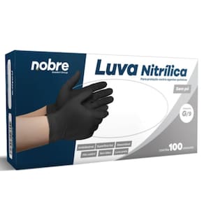 Luva Nitrilica sem Pó para Proteção Contra Agentes Químicos G/9 Caixa com 100 Unidades Preto (Não Estéril) - 50857 - NOBRE