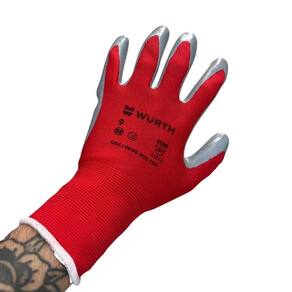 Luva sintética em malha de poliéster na cor vermelha com revestimento nitrílico na palma e nos dedos, punho em malha elástica. Oferece conforto e flexibilidade nas operações onde exijam agarre e tato. Pode ter contato com óleo e graxa.