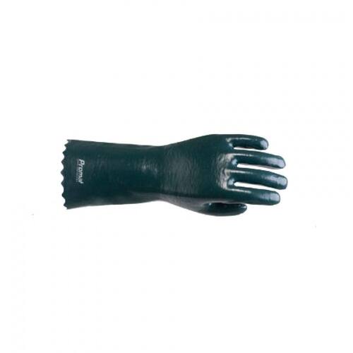 Luva confeccionada em PVC com suporte têxtil e malha 100% algodão;