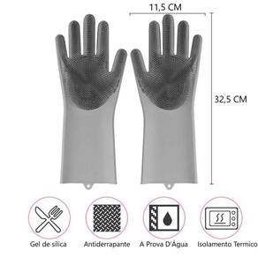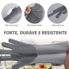 par de luvas em silicone com filamentos nas palmas das mãos utilizados para lavar louças com muito mais praticidade e higiene. Por serem confeccionadas 100% em silicone de uso culinário, podem ser esterilizadas em água quente, micro-ondas ou lava louças. Características do produto aviso sobre o produto: imagem ilustrativa. Tipo: utensílios em silicone. Tamanhos: único. Material utilizado na fabricação: silicone. Disponível em cores. O pacote inclui: 01 par de luvas lava-louça
