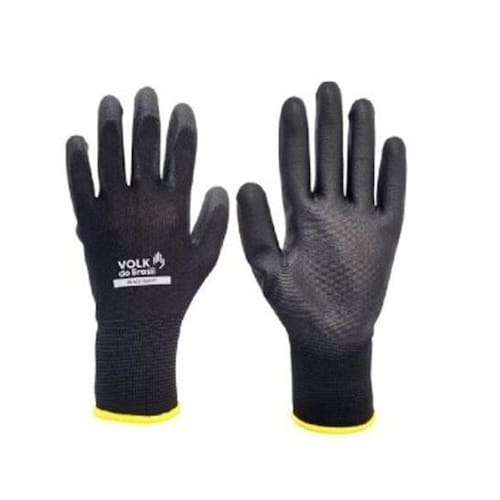 Luva de segurança confeccionada em fibras sintéticas poliéster , 13 gauge, revestimento em poliuretano pu na palma e dedos