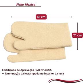 Luva térmica em grafatéx - cano longo par A luva térmica em grafatex é o item essencial para quem busca proteção, conforto e segurança no manuseio de objetos quentes. Ideal para padarias, confeitarias, cozinhas profissionais e residenciais, esta luva resiste a altas temperaturas e garante segurança total durante o trabalho. Fabricada em grafatex, material conhecido pela alta resistência térmica, a luva é durável, confortável e fácil de limpar, proporcionando um desempenho confiável em qualquer ambiente de cozinha. Usabilidade Utilize a luva térmica em grafatex sempre que precisar retirar formas, assadeiras ou utensílios quentes do forno. Seu interior macio e respirável garante conforto mesmo após longos períodos de uso. Fácil de limpar e secar, é perfeita para uso diário em cozinhas domésticas e profissionais. Ficha técnica Material: grafatex resistente tamanho: 45 cm cor: bege tipo: cano longo temperatura de resistência: até 300c Quantidade: 1 par indicação: cozinha, padaria, confeitaria, churrasco a resistência térmica pode variar conforme o tempo de exposição ao calor 10 benefícios do produto Suporta altas temperaturas com segurança fabricada em grafatex de alta resistência modelo cano longo para agilidade no manuseio interior confortável e respirável protege mãos e punhos contra queimaduras ideal para fornos, churrasqueiras e confeitarias material durável e de longa vida útil antiderrapante e firme no toque lavável e fácil de higienizar excelente custo-benefício para Não encontrou o que precisava Fale com a gente sua sugestão é muito bem-vinda. Vamos buscar a melhor opção com preço competitivo, para que você possa adicionar tudo ao carrinho e receber em um único pacote. A isamar Desde 1978, a isamar é referência em panificação e confeitaria. Nosso compromisso é criar parcerias sólidas, oferecer produtos de qualidade e impulsionar o sucesso dos nossos clientes. Enviamos para todo o brasil, levando soluções completas e atendimento próximo, transformando clientes em verdadeiros parceiros e amigos. Marca: Não Informado