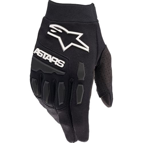 Alpinestars Luvas Full Bore Preto/Branco 4X (3563622-10-4GG) - Palma de camurça sintética para altos níveis de durabilidade e aderência - Estampa de silicone na ponta dos dedos para aderência otimizada com os controles da bicicleta - Fourchettes elásticas para níveis ideais de conforto e flexibilidade - Emblemas de polegar reforçados para maior durabilidade e resistência à abrasão - Punho elástico para um ajuste otimizado com um fecho de alça para segurança
