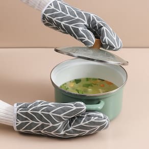 Especificação Material: algodão e linho Cor: cinza Tamanho da embalagem: 13 x 26 x 2 cm Peso da embalagem: 0,15 kg Lista de embalagem: 2 x luvas de forno Essas luvas de forno resistentes ao calor são projetadas para proteger suas mãos de altas temperaturas ao cozinhar, assar ou manusear pratos quentes. O material de linho de algodão espesso garante a máxima proteção. As luvas apresentam um design geométrico elegante, adicionando um toque moderno à sua cozinha. Perfeito para uso no forno, micro-ondas ou ao manusear utensílios de cozinha quentes, oferecendo funcionalidade e apelo estético. Feitas de linho de algodão durável, essas luvas de forno oferecem resistência superior ao calor, tornando-as ideais para uma variedade de tarefas de cozinhar e assar. Eles oferecem excelente aderência e conforto enquanto protegem suas mãos. As luvas são leves, respiráveis e confortáveis, permitindo uma aderência firme em panelas, frigideiras e bandejas. Eles são flexíveis o suficiente para garantir a destreza e, ao mesmo tempo, manter suas mãos protegidas contra queimaduras. O conjunto inclui duas luvas, oferecendo proteção total para ambas as mãos. Essas luvas são fáceis de limpar e manter, oferecendo durabilidade duradoura para o uso diário na cozinha.