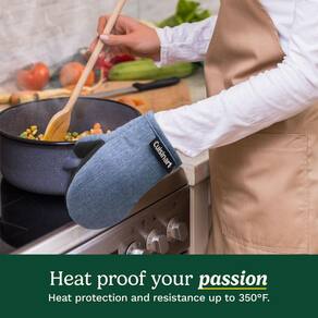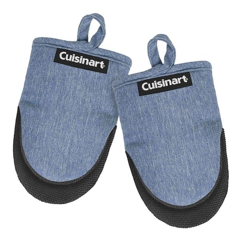 Cuisinart Mini luvas de forno – luvas de cozinha resistentes ao calor de 14 x 18 cm para forno com palma de neoprene antiderrapante, enchimento de algodão e laço de tecido – Conjunto de luvas de forno - Proteção ideal contra o calor: estas mini luvas de forno são projetadas com uma palma de neoprene antiderrapante que oferece aderência segura e alta resistência ao calor (até 350 graus). Se você estiver puxando um prato quente do forno ou manuseando uma panela escaldante, essas luvas fornecem proteção essencial para todas as suas necessidades de cozinha e cozimento. - DESIGN CONFORTÁVEL E AMBIDEXTROSO: Medindo 14 x 18 cm, estas pequenas luvas de forno oferecem um ajuste confortável com um design ambidestro, tornando-as um acessório de cozinha prático para todas as suas tarefas de cozinhar e assar. - Escolha de presente perfeita: encante seus entes queridos com estas luvas de forno elegantes e práticas. Ideal para inauguração de casa, chás de panela ou presentes de casamento, eles adicionam um toque encantador a qualquer decoração de cozinha. Com uma variedade de cores disponíveis, elas são uma adição cuidadosa e funcional a qualquer item essencial de cozinha. - Conforto e durabilidade: o enchimento 100% algodão oferece às nossas luvas de forno maior conforto e proteção extra contra o calor. Construídas com materiais de alta qualidade, estas luvas de forno de alta temperatura são feitas para durar, tornando-as uma escolha confiável para uso diário em sua cozinha e atividades de panificação. Além disso, são fáceis de lavar à mão e limpar no local, garantindo que permaneçam frescas e prontas para cada sessão de cozimento. - Uso multifuncional: não apenas para assar e cozinhar, estas mini luvas de forno também funcionam como suportes de panela para tarefas de cozinha. O laço de tecido permite pendurar e armazenar facilmente, enquanto a estrutura durável significa que eles podem lidar com panelas quentes, frigideiras e até mesmo panelas de ferro fundido com facilidade.