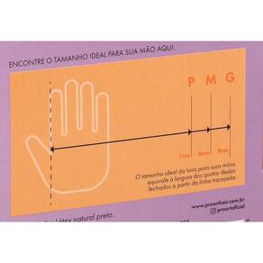 As Luvas de Látex Black são ideais para profissionais que trabalham com processos e produtos químicos, colorações, alisamentos, relaxamentos e botox capilar. Elas também podem ser utilizadas durante a lavagem dos fios ou aplicação de cremes, loções, tônicos e outros tratamento capilares. Instruções de Uso: 1. Antes de calçar as luvas, lave e seque bem as mãos. 2. Mantenha as unhas aparadas 3. Para calçar as luvas, dobre o punho para fora e segure firme, encaixe os dedos na abertura e acomode nos espaços correspondentes, puxe a luva e arrume ambos os lados até que a mão e o punho estejam protegidos. Encontre o tamanho ideal medindo a largura dos quatro dedos fechados a partir do final do dedo polegar. P:7CM M:8CM G:9CM Advertências: Produto fito de látex natural preto, pode causar alergias em pessoas sensíveis ao componente; Aumento do risco de acidente caso o produto seja utilizado na operação de equipamentos, máquinas ou atividades com partes móveis. Após uso, lave em água correente e deixe secar naturalmente. Maior sensibilidade ao toque Higiênica e confortável Desliza no cabelo Resistente, lavável e reutilizável Dispensa o uso de talco e amido Ambidestra Ean: 731509990362