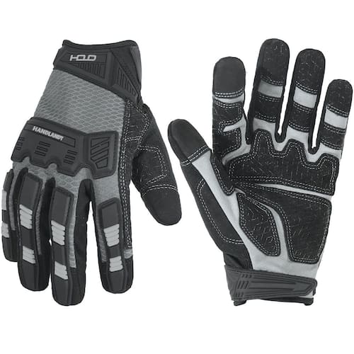 Luvas de trabalho HANDLANDY Impact Reducing com aderência em preto e branco