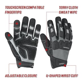 Estas são luvas de trabalho confortáveis e versáteis para todos os fins. Couro sintético com palma e dedos revestidos de silicone para aderência e resistência à abrasão. O couro sintético é moldado para permitir o movimento. Do outro lado da luva de trabalho, há uma almofada de borracha na parte de trás para proteção. O restante da luva de trabalho é uma malha de elastano que se encaixa confortavelmente e respira bem. - Boas luvas de trabalho para todos os fins: design reforçado antiabrasão e luvas de trabalho antiderrapantes, combina couro sintético com remendos de palma reforçados e revestimento de silicone, polegar e pontas dos dedos para maior durabilidade, aderência e proteção. Ideal para uso de ferramentas manuais, manuseio de pacotes, condução, movimento, manutenção automotiva, manuseio de metal, construção pesada e assim por diante. - Protetor TPR atualizado nas costas: luvas mecânicas resistentes a impactos com proteção contra impactos protegem contra batidas e batidas sem impedir a flexibilidade ou destreza, bom protetor para aplicação da lei e construção. - Costas de elastano respirável: a parte traseira de elastano elástico mantém suas mãos frescas e flexíveis para uso durante todo o dia. Estas luvas de trabalho resistentes a impactos atingem um equilíbrio perfeito entre ser suficientemente protetora e manter flexibilidade suficiente. - Design Uwrist: o fecho de pulso ajustável exclusivo em forma de U funciona perfeitamente com o seu relógio, mantém os olhos no seu tempo e na sua saúde durante o trabalho, não precisa tirar as luvas e também oferece conforto e flexibilidade de ajuste. Mais importante, pode segurar melhor o seu pulso e também oferecer proteção no seu pulso contra o risco de impacto. - Pontas dos dedos da tela sensível ao toque e pano felpudo: fornece acesso instantâneo à tela sensível ao toque e mais conveniente para limpar o rosto e o suor enquanto mantém o foco na tarefa em mãos.