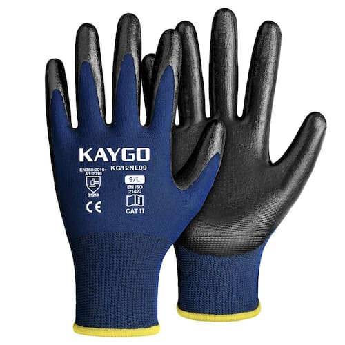 Atualize a proteção das suas mãos com as luvas de trabalho da KAYGO projetadas para atender aos mais altos padrões de segurança e desempenho. Se você estiver trabalhando na construção, reparo automotivo ou enfrentando projetos de bricolage, essas luvas oferecem aderência, proteção e conforto incomparáveis. O revestimento de nitrilo suave de alta qualidade oferece aderência superior, mesmo em condições de óleo leve, reduzindo o risco de escorregões e acidentes. O design de malha sem costura de calibre 13 garante um ajuste confortável e flexível que permite o máximo de destreza, facilitando o manuseio de ferramentas e a execução de tarefas complexas. A parte traseira de poliéster respirável mantém suas mãos frescas e secas, tornando essas luvas confortáveis para longas horas de uso. O punho elástico garante um ajuste seguro, evitando que sujeira e detritos entrem nas luvas. Certificadas para atender às normas EN388: 2016, EN ISO 21420 e CAT II, essas luvas oferecem proteção confiável contra abrasões, cortes, rasgos e perfurações. Disponível nos tamanhos P a 2GG, há um ajuste perfeito para todos os tamanhos de mão. Escolha as luvas de trabalho KAYGO para proteção confiável das mãos e melhor desempenho em qualquer trabalho. Aderência melhorada: Palmas revestidas de nitrilo para aderência superior em condições de óleo seco e leve. Construção durável: malha sem costura calibre 13 para resistência e flexibilidade. Ajuste confortável: parte traseira de poliéster respirável mantém as mãos frescas e secas. Uso versátil: perfeito para tarefas industriais, automotivas, elétricas, paisagismo e gerais. Proteção certificada: atende aos padrões de segurança EN388: 2016 (3121X), EN ISO 21420 e CAT II. Faixa de tamanhos: disponível nos tamanhos P a 2GG para o ajuste perfeito. Detalhes técnicos: Marca: KAYGO Número do modelo: KG12 Material: Palmas e dedos revestidos de nitrilo, parte traseira de poliéster Tamanhos: S-2XL Cor: Preto Certificação: EN388: 2016 (3121X), EN ISO 21420, CAT II