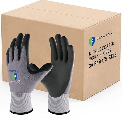 PROMEDIX P Luvas de trabalho revestidas de nitrilo, luvas de trabalho de segurança de microespuma masculinas, luvas de nylon e elastano de malha sem costura com aderência - Aderência otimizada e encaixe - Guantes De Trabajo oferece excelente resistência à abrasão e excelente aderência. Seu ajuste reduz a fadiga das mãos e aumenta o conforto. Adequado para ambientes úmidos e secos. Estamos atualizando o padrão traseiro, o produto que você recebe pode ter um padrão diferente, mas funcionar exatamente da mesma forma. - Flexibilidade e respirabilidade – A mais recente tecnologia de tricô de nylon sem costura é utilizada para produzir pontas dos dedos suaves e arredondadas, melhorando a sensibilidade e a flexibilidade das pontas dos dedos. O revestimento oferece excelente respirabilidade, reduzindo a transpiração ao longo do dia. O pulso de malha ajuda a evitar que sujeira e detritos entrem nas luvas. - DURABILIDADE e EXCELENTE DEXTERIDADE - Estes revestidos na palma e nas pontas dos dedos oferecem uma aderência segura em condições secas e ligeiramente molhadas/oleosas. Lavável na máquina. - MÚLTIPLAS APLICAÇÕES - Ideal para trabalho externo, construção regular, mecânica, logística, armazém, condução, paisagismo/jardinagem, melhoria da casa, quintal, limpeza, lavagem mecânica e trabalhos de bricolage. - Se você tiver algum problema com os produtos, ou o produto não atender às suas expectativas, a qualquer momento.