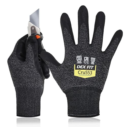 DEX FIT Luvas Resistentes ao Corte Cru553 - Proteção Nível 5, Ajuste Conforto 3D, Aderência Durável, Fina e Respirável, Tela Sensível ao Toque, Lavável, Manuseio e Corte Delicados; Preto Cinza G 1 par