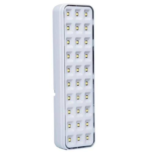 Descrição Luminária Luz De Emergência 30 Leds Recarregável Bivolt - Lanterna Descrição: Luminária 30 Leds recarregável Led indicador de carga e energia Utilizado também como lanterna Função que acende automaticamente a luminária quando a energia acaba Alça para transporte Baixo consumo de energia 30 Leds Encaixes para fixação na parede 6 Horas Na Luz Mínima E 3 Horas Na Luz Máxima Alto Brilho Chave Liga/Desliga ESPECIFICAÇÕES: Cor: Branco Brilho: Branco Potência: 1,5 w Voltagem: AC 127-220V - 60 Hz Bateria interna de Lítio - 1Ah Dimensões: 20 X 5 X 2,5 cm ITENS INCLUSOS: 01 Luminária / Luz de emergência 30 LEDS 01 Cabo de energia Marca: Não Informado