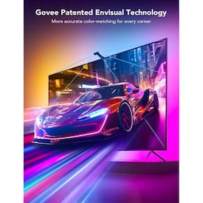 Luz de fundo de TV Govee Envisual T2 com câmeras duplas, luz de fundo LED RGBIC Wi-Fi de 16,4 pés para TVs de 75 a 85 polegadas, funciona com Alexa e Google Assistant, controle inteligente de aplicativos, luzes de TV com sincronização de música e adaptador - Tecnologia visual patenteada pela Govee: câmeras duplas atualizadas fornecem uma combinação de cores mais precisa nas bordas. Os impressionantes efeitos visuais de seus filmes favoritos se estendem por toda a sala, criando um home theater privado e uma experiência de visualização verdadeiramente envolvente. - Compatibilidade ilimitada de conteúdo de TV: as luzes de fundo LED da Govee TV se ajustam em tempo real ao conteúdo da TV reproduzido na tela, como programas de TV, esportes e sessões de jogos. As luzes da TV Govee são competentes para combinar com as cores de qualquer conteúdo da tela. - DreamView Light Show: O recurso DreamView leva a luz de fundo LED da TV Govee a novos patamares de personalização, permitindo que os amantes do cinema conectem várias luzes Govee. Veja todo o seu espaço ser banhado por uma impressionante variedade de vibrações. - Controle funcional de aplicativos: gerencie as luzes de fundo LED da TV Govee com o aplicativo Govee Home, que ajuda a ajustar o brilho e a cor. Diversos modos incluem Energetic, Rhythm, Spectrum e Rolling. Aproveite o acesso a vários modos, incluindo DIY, Vídeo e Música. - Iluminação RGBIC aprimorada: com 60 LEDs/m atualizados e o dobro dos grânulos de luz, desfrute de uma distribuição mais densa dos grânulos de luz RGBIC para uma iluminação mais vívida e natural, o que ajuda a aprimorar a visualização imersiva de filmes e jogos. - Dicas de uso: Ao calibrar, use um ponto de acesso de celular ou fique mais perto do roteador para carregar a “tela de calibração” mais rapidamente. Evite a luz solar direta, o que afetará o efeito de seleção de cores ao assistir filmes.
