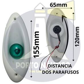 Itens adicionais Resistente ao ambiente marinho; Material: plático abs; Cor: branca; Iluminação em led; Ideal para montagem embutida; Voltagem: 12v. Dimensões do produto: Dimensões:155mm x 65mm Distância entre furos: 120mm Profundidade 30mm