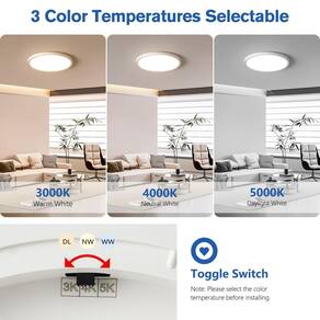 -?3 temperaturas de cor selecionáveis?Alterne entre as temperaturas de cor de 3000K (quente), 4000K (neutra) e 5000K (luz do dia) sem esforço por meio do controle deslizante montado na parte traseira. Essas luzes de teto embutidas de 12 polegadas se adaptam a qualquer clima - relaxe com um calor aconchegante ou aumente a produtividade com iluminação nítida à luz do dia.