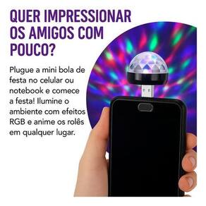 Mude isso em segundos com o Mini Globo de Festa USB Com luzes vibrantes que reagem à música, você cria um clima envolvente com apenas uma porta USB.